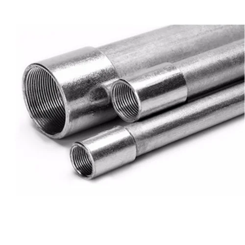 Heavy-wall galvanized steel conduit for exterior or industrial use.